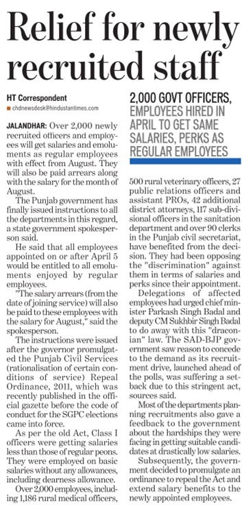 The Finance Dept. clarified various Depts. by a letter that all the employees regularized after 5 april that were under the affect of PCS Act (amended), are all be excluded and are liable to get full salary with allowances. And Services to be counted (as regular) from the day of appointment (for various benefits).<br>